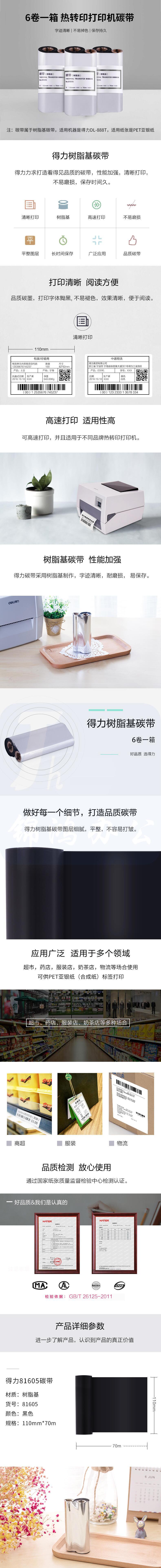 得力81605树脂碳带110mmX70m热转印打印机碳带(适合亚银纸)
