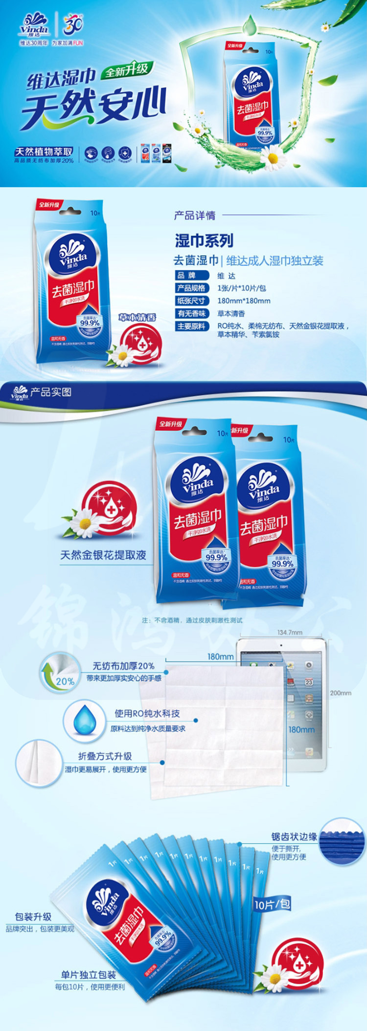 维达 成人去菌10片装 独立便携装 擦汗洁肤卫生湿纸巾 VW1009