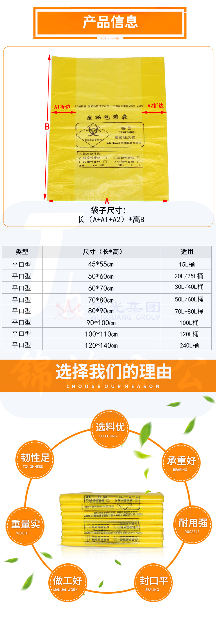 黄色垃圾袋 45*50cm 100个/包 黄色平口垃圾袋