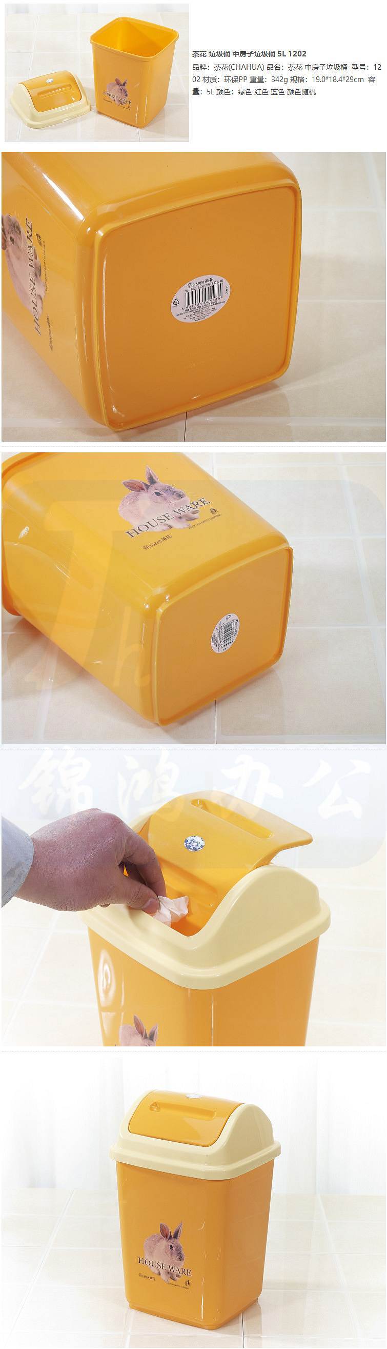 描述:茶花1202欧式翻盖废纸筒垃圾桶5L\19*18.4*29cm(个)