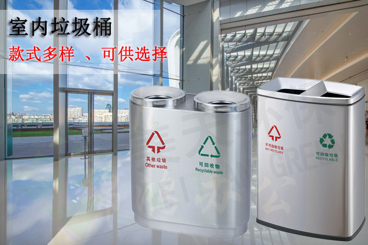 室内室外均适用 圆桶双口垃圾桶 双口分类垃圾桶 78*38*81cm