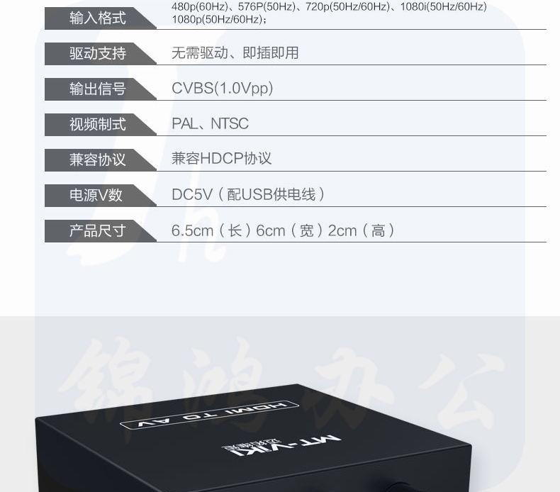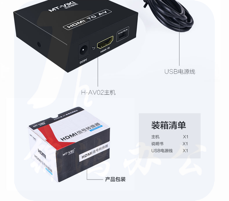 迈拓维矩MT-H-AV02 HDMI转AV转换器 音视频同步 高清机顶盒接