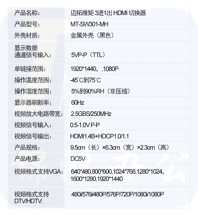 迈拓维矩(MT-viki) hdmi切换器二进一出分配器 二进四出 3进1出 2进2出 4进2出 塑料外壳 5进1出(MT-SW501S) 默认