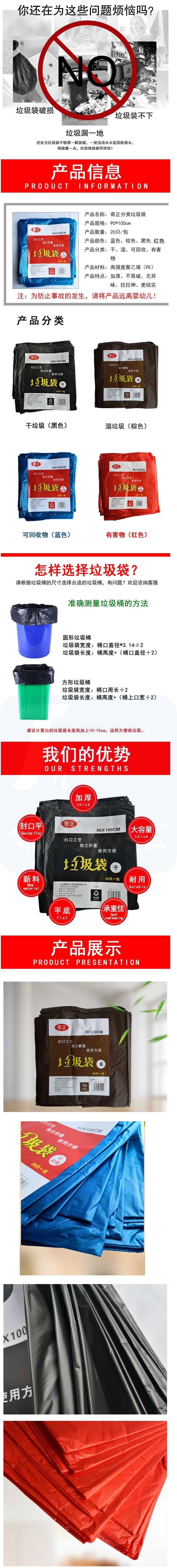 奇正 垃圾袋(有害) 90*100 红色垃圾袋 20个/包 货号:LJ