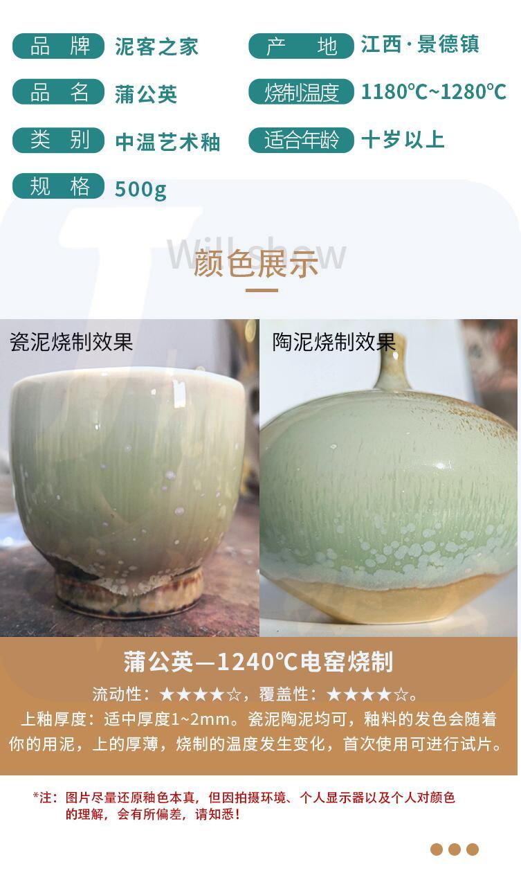 艺术釉瓷釉 蒲公英结晶釉料 500g 货号:JC