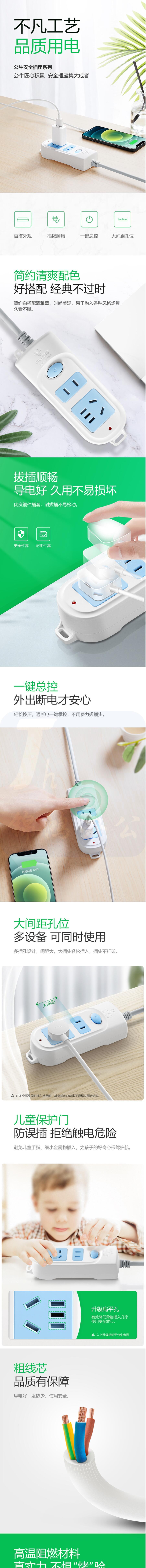 公牛 GN-612 2位总控 3米多位插座 新国标插座/插线板/插排/排插