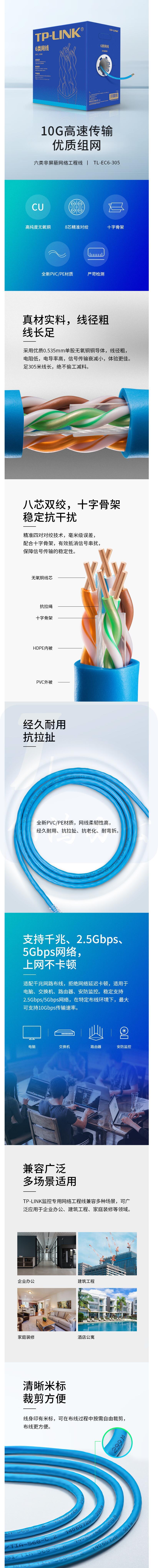 TP-LINK 六类千兆网线 工程级无氧铜箱线305米 CAT6类非屏蔽纯铜双绞线 EC6-305(橙) 货号:JC