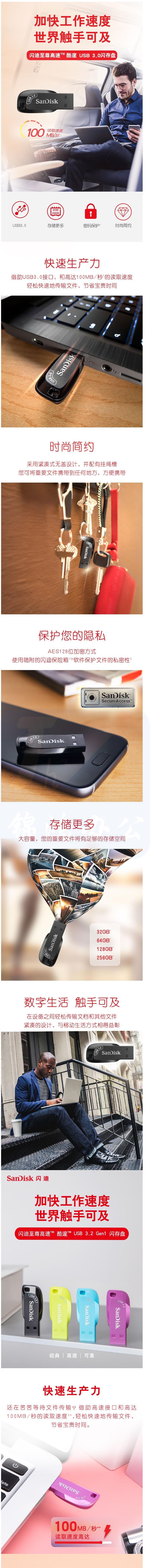 闪迪(SanDisk) U盘 CZ410 酷邃 高速USB3.0读取速度100MB/s 内置加密软件 时尚设计 学生优盘 商务办公 64GB 黑色