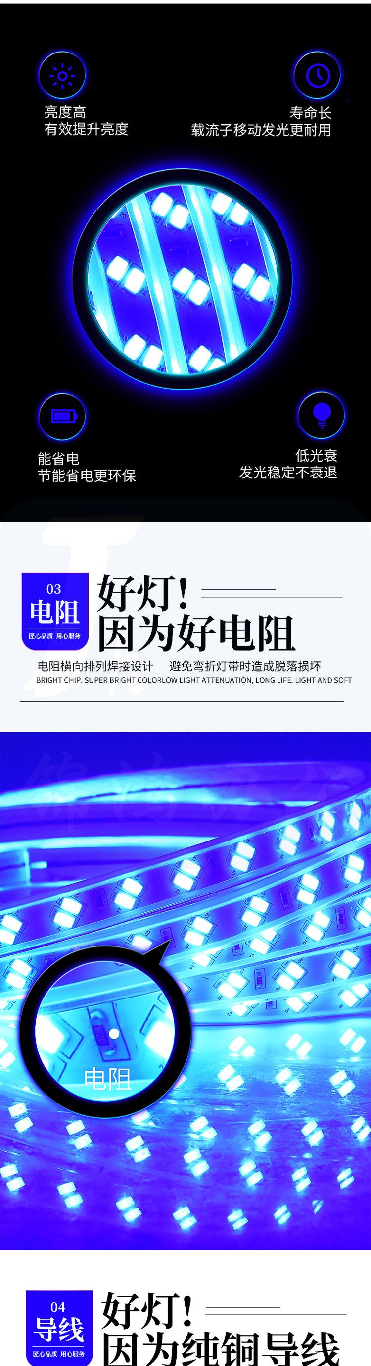 凝聚力 2835-120D LED无导线灯带暖光单直排100米