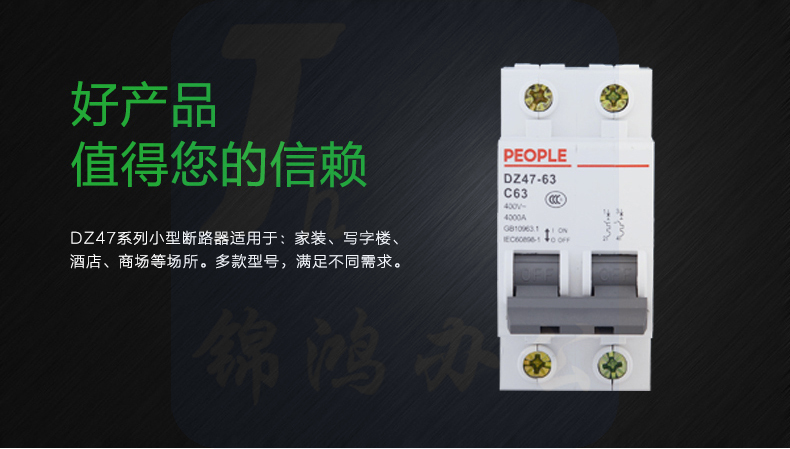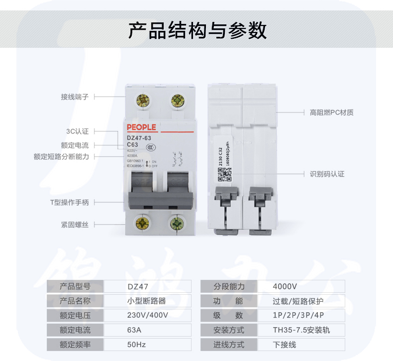 人民电器(PEOPLE)断路器 2P DZ47空气开关 10-63A