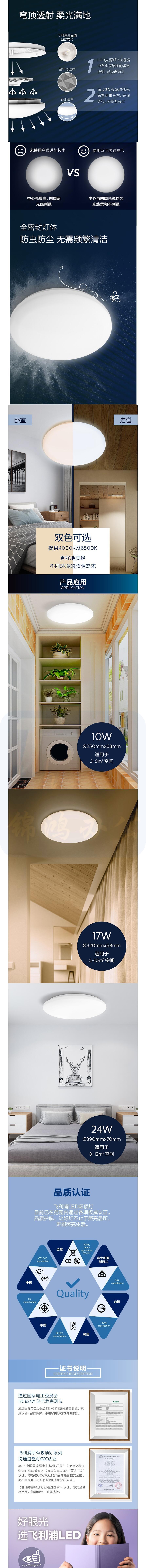 飞利浦 LED吸顶灯 简约吸顶灯 感应灯 16W