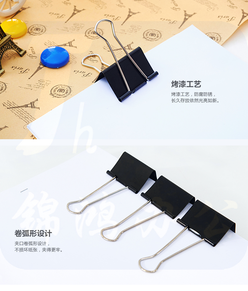 晨光 ABS92733黑色长尾夹 41mm票夹 24只筒