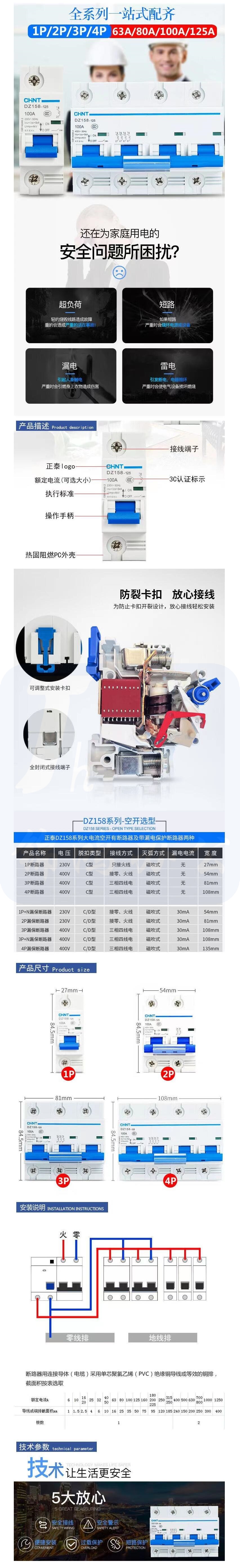 正泰 电流断路器 空气开关 DZ158-125 3P 100A