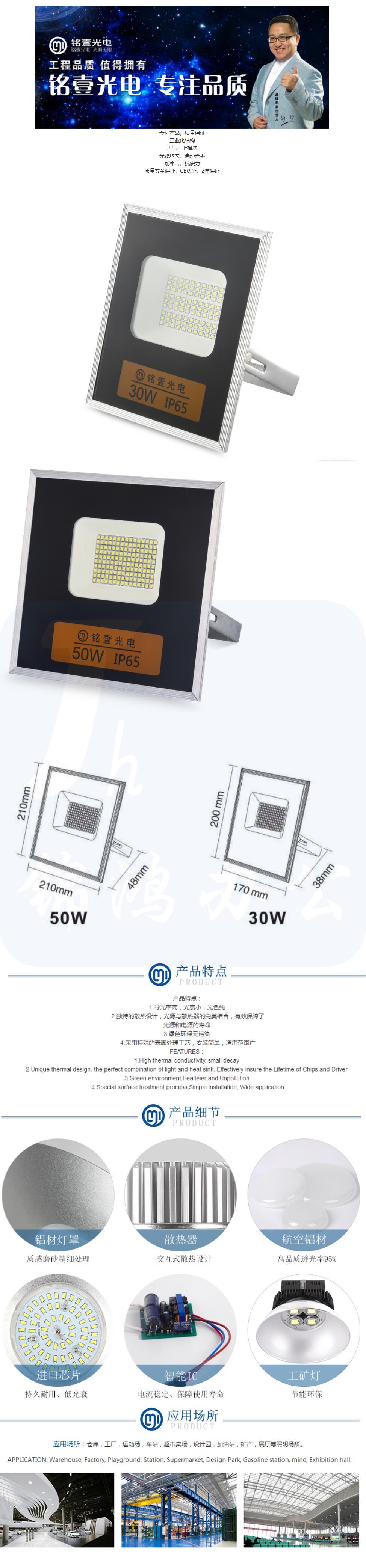 铭壹 50W 投光灯LED景观照明户外防水灯TG4-50W-6500K