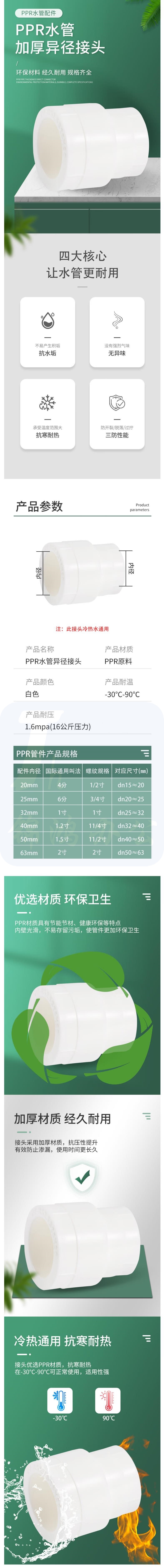 PPR异径直接 热熔管接头 异径活接 63*50 货号:HXE