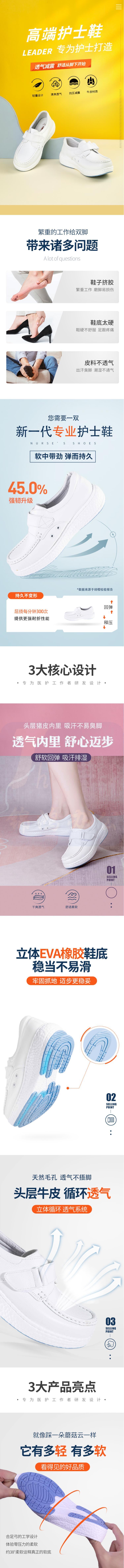 绯樱 BT1957护士鞋春秋季款真牛皮软底透气深口低帮平底一脚蹬工作鞋白色33~42码