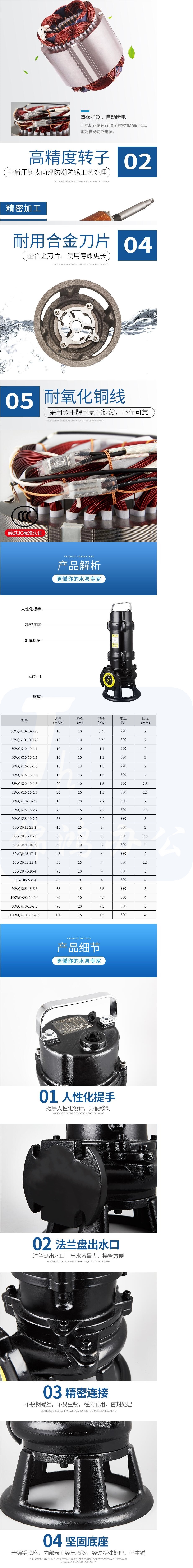 上海人民 WQK65-15-5.5 家用切割式污水泵 潜水泵切割泵 口径80流量65m²/h扬程15米功率5.5KW(不含安装)