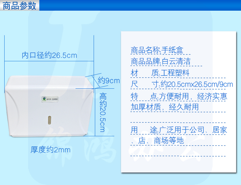 白云 擦手纸盒擦手纸架卫生间浴室防水清洁厕纸盒 20.5*26.5/9