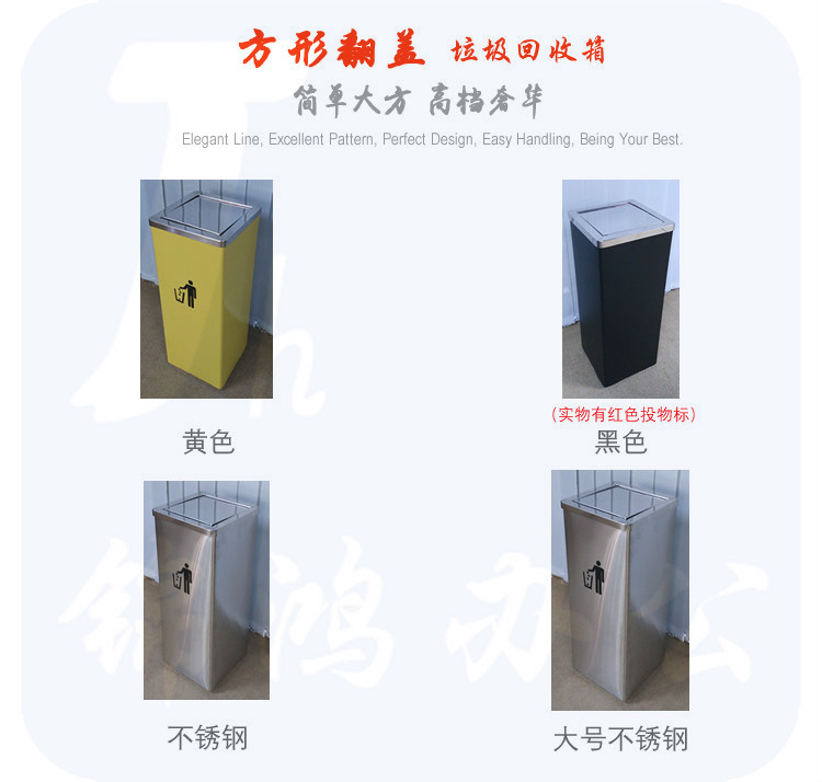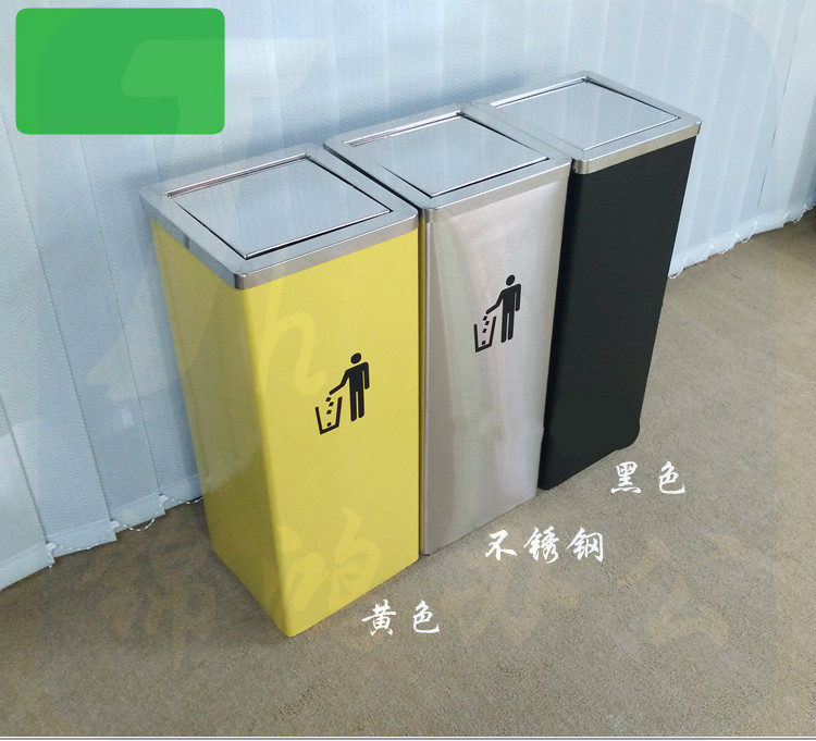 不锈钢方形摇盖垃圾桶小号 24*24*61cm