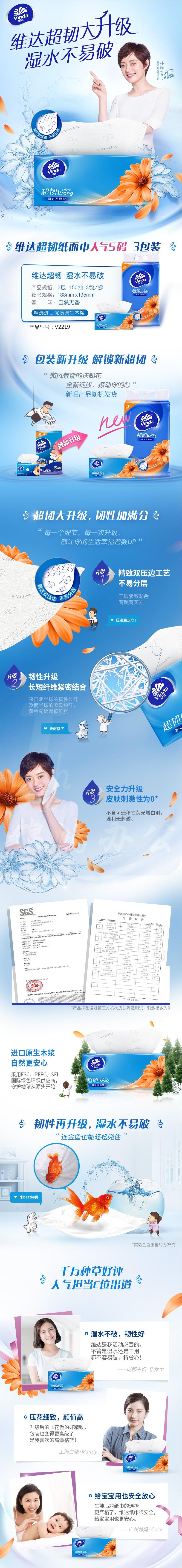 维达 超韧三层面巾纸 V2219 140*195mm 3层 150抽/包 3包/提(按提销售)