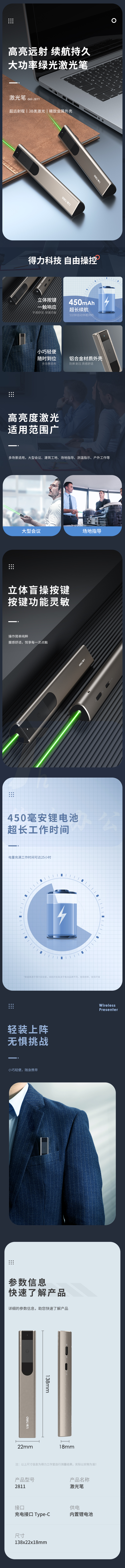 得力 大功率激光笔 强光远射型 沙盘教练指示笔 激光笔绿光 2811