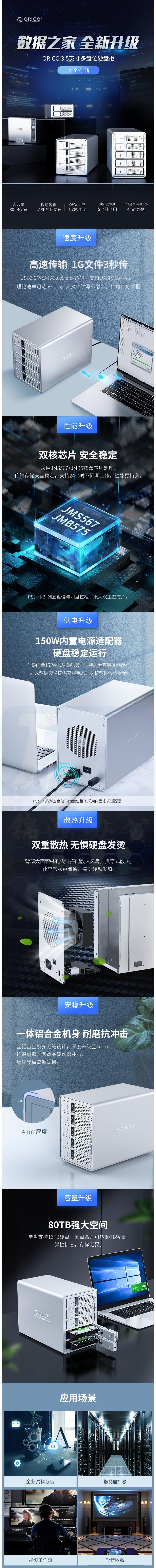奥睿科 硬盘柜 3.5英寸USB3.0 SATA串口 5盘位硬盘盒移动外置外接盒 黑色9558U3