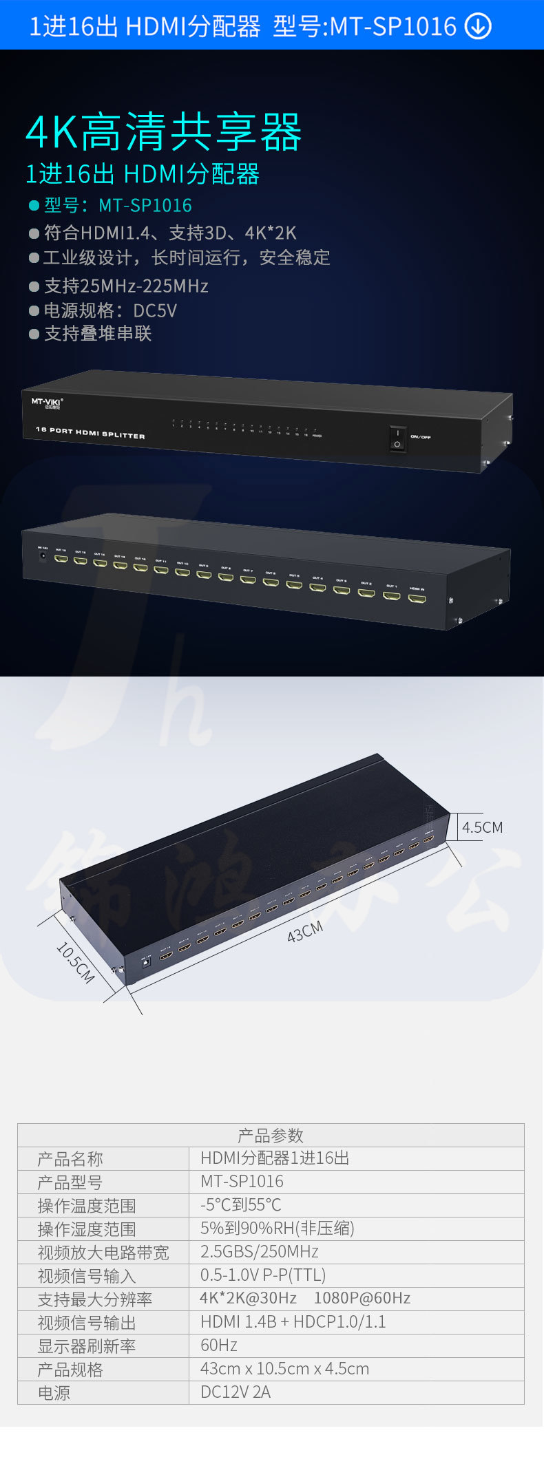 迈拓维矩(MT-viki)HDMI分配器 4K高清画质 1进16出MT-SP1016