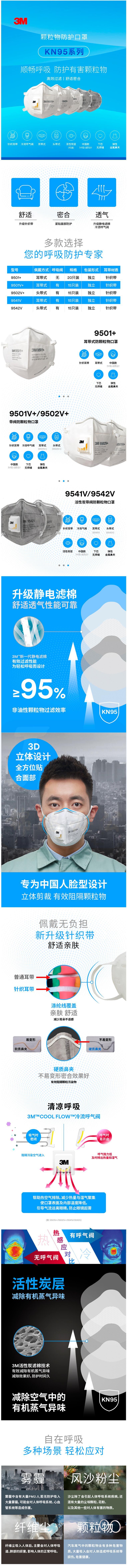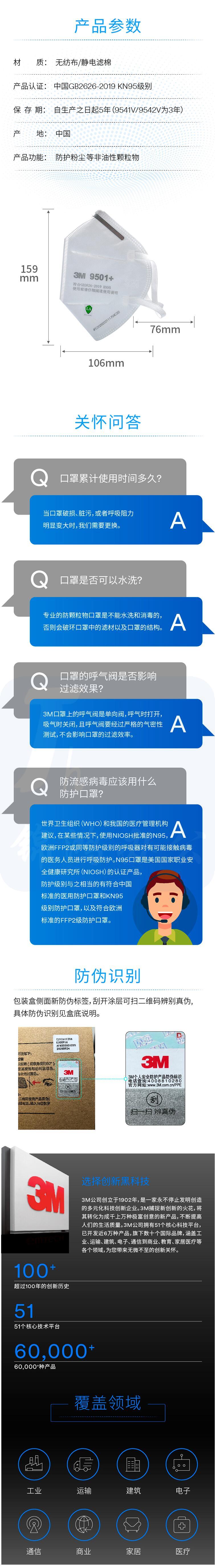 3M KN95口罩9501+ 防雾霾PM2.5 防飞沫 舒适针织带 耳戴式