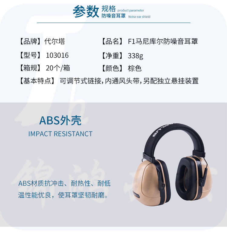 代尔塔 103016F1 马尼库尔防噪音耳罩 射击学习工厂劳保舒适款