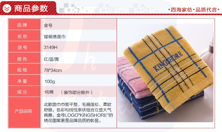 金号 面巾 3149H 提缎纯棉毛巾10/包 (每箱150条)