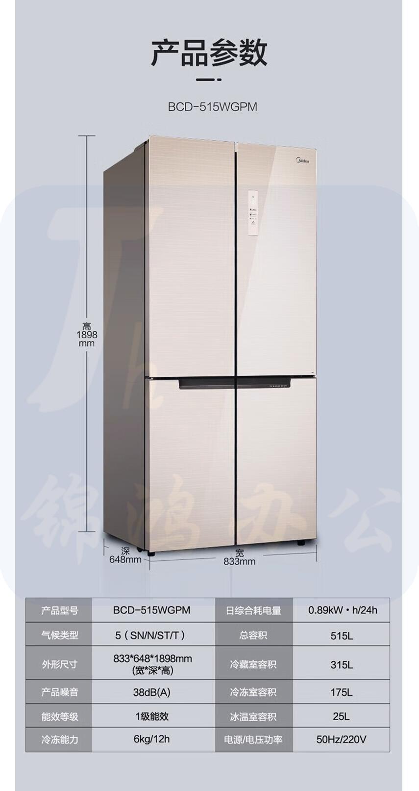 美的 517升四门风冷无霜一级能效双变频电冰箱 BCD-517WSGPZM钻石灰