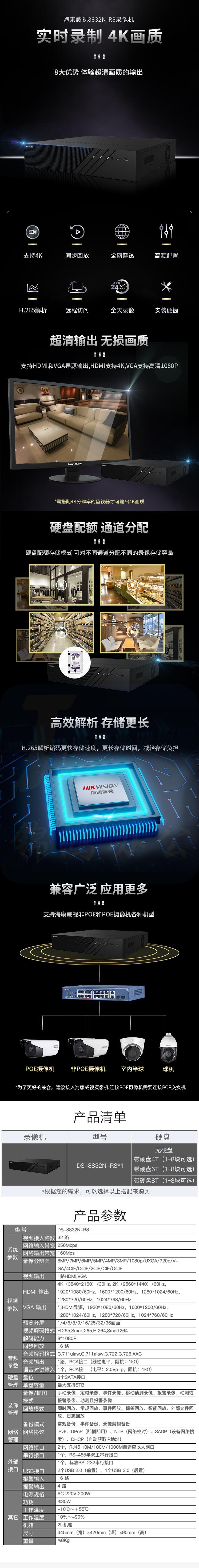 海康威视 硬盘录像机32路8盘位4K高清网络主机 DS-8832N-R8