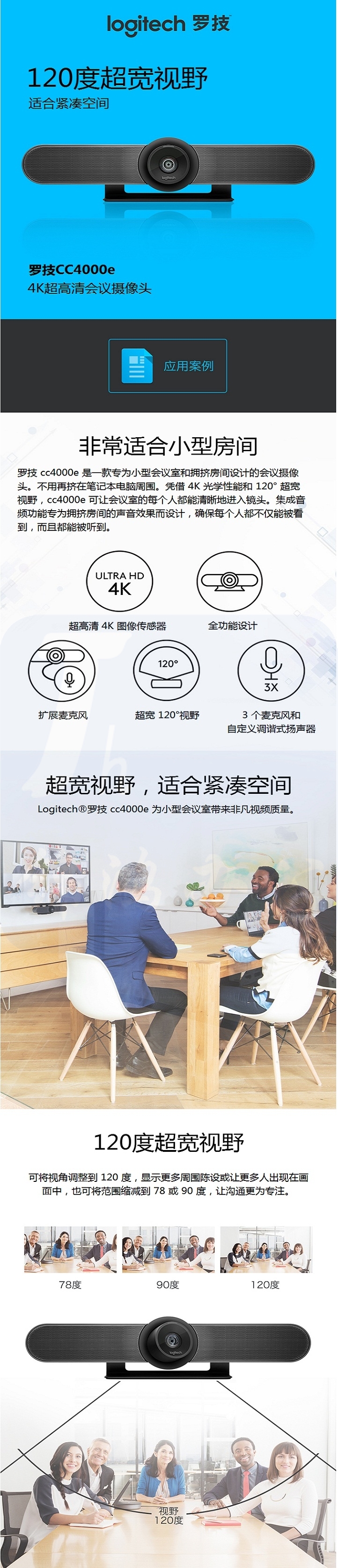 罗技(Logitech)CC4000e 商务高清音视频会议系统