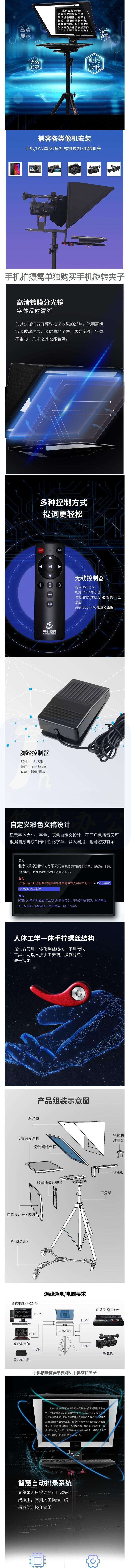 天影视通 TS-2400 24寸摄像机提词器+三脚架专用地轮+提词器控制器+TS-15脚踏板控制器 货号:JC
