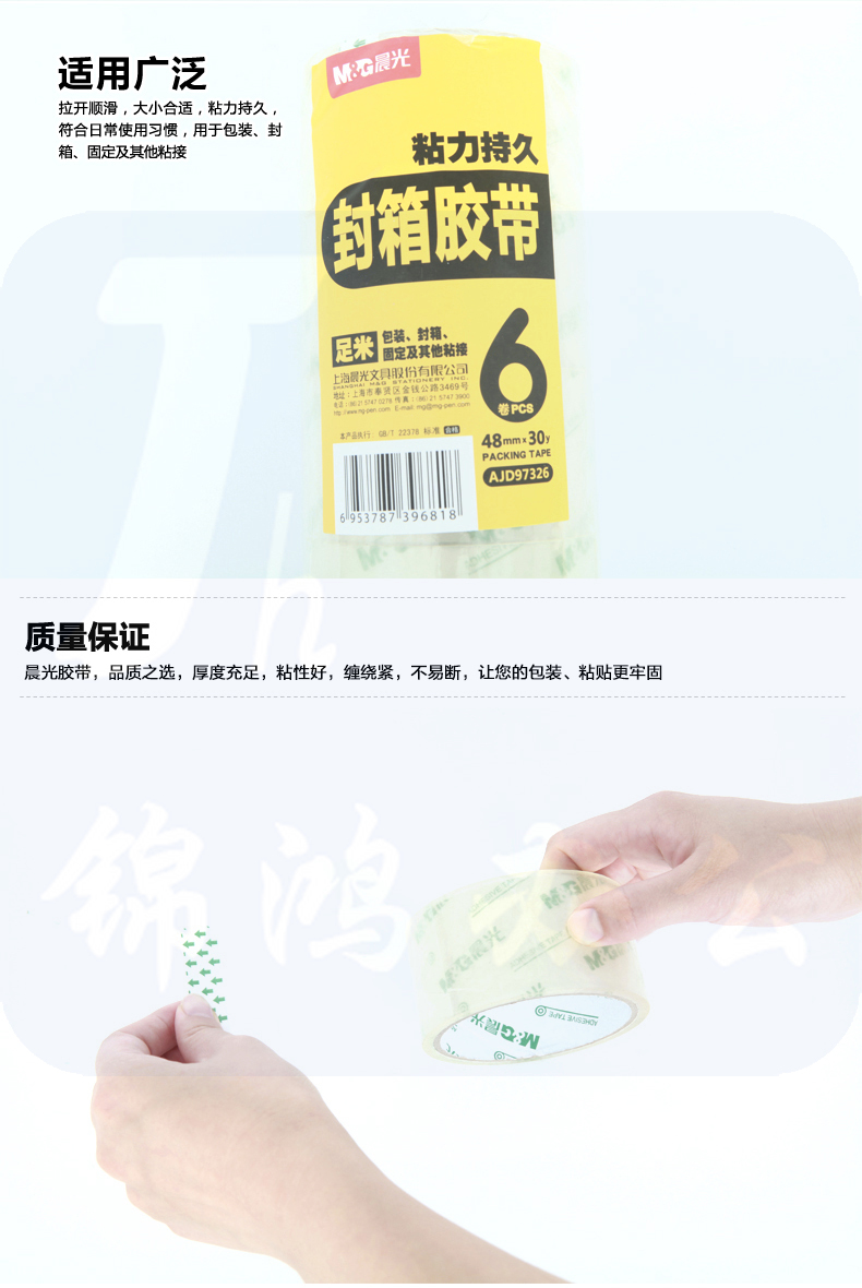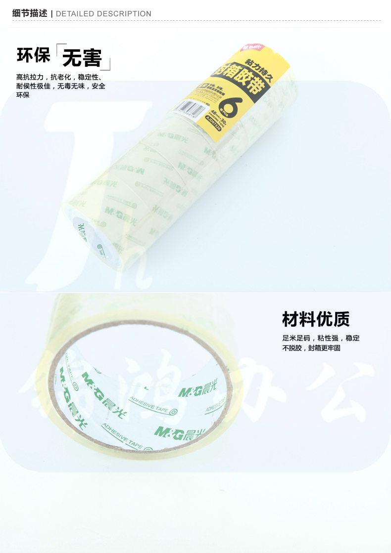 晨光(M&G)普透封箱胶带48mm*30Y 透明胶带 办公用品AJD97326 一包6卷