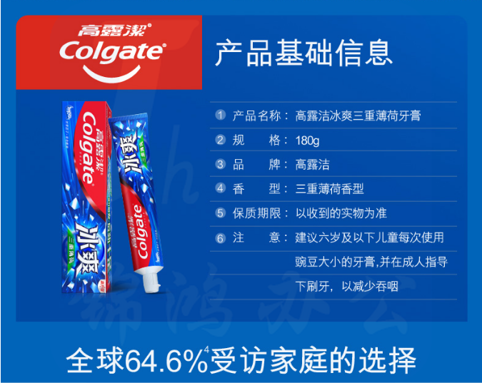 高露洁 180克 冰爽薄荷牙膏(新老包装随机发)
