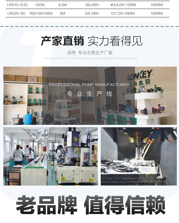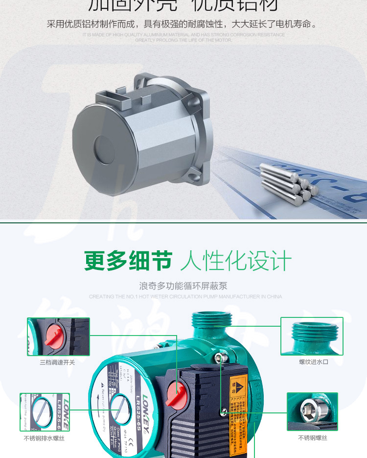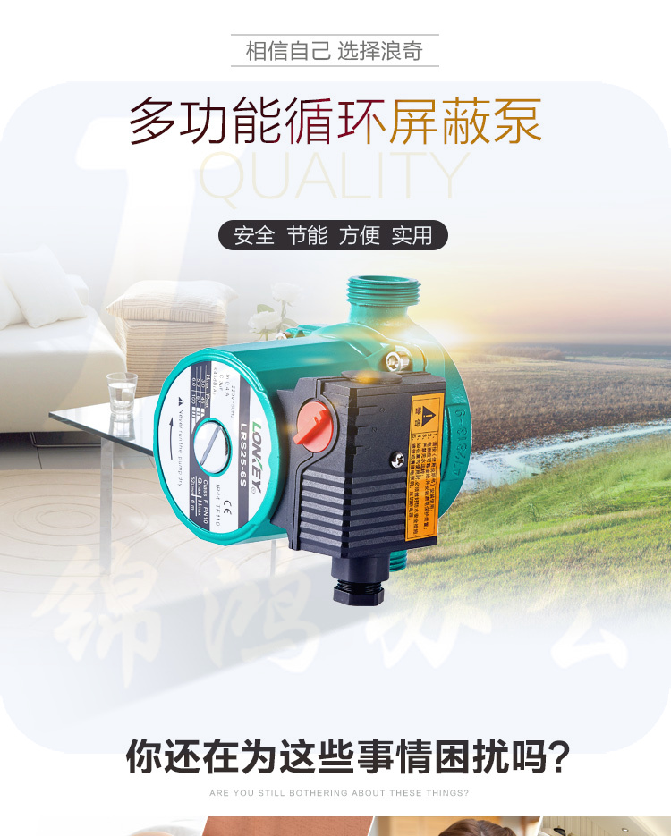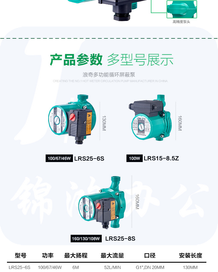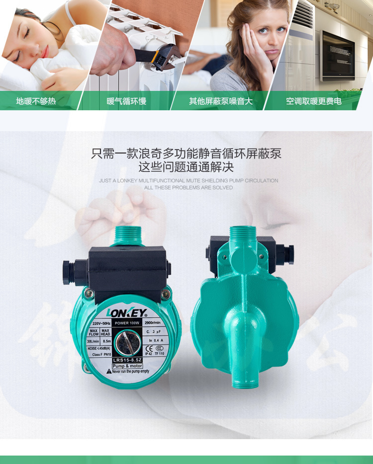 浪奇 LRS15-8.5Z-100W 屏蔽泵 暖气循环泵增压泵