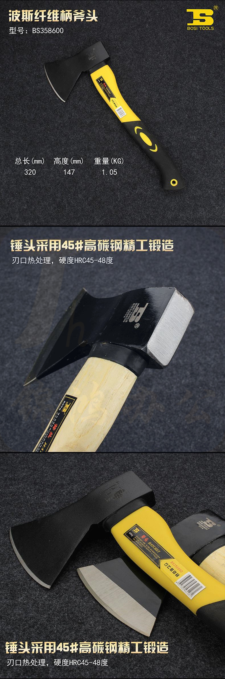 BS358600 纤维柄斧头 600g 斧头/木工采伐斧/园林斧/野营斧