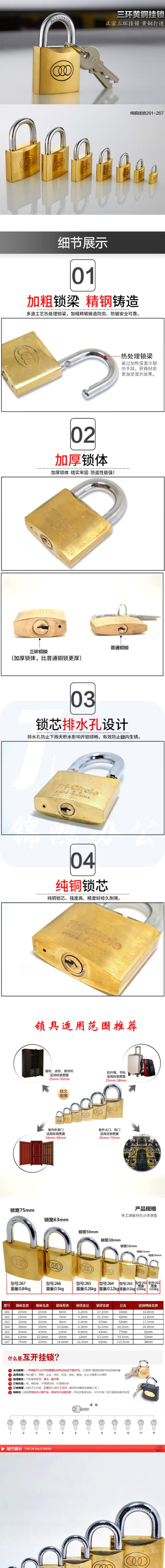 三环 铜挂锁 63mm 配10把钥匙 (定制款联系客服)