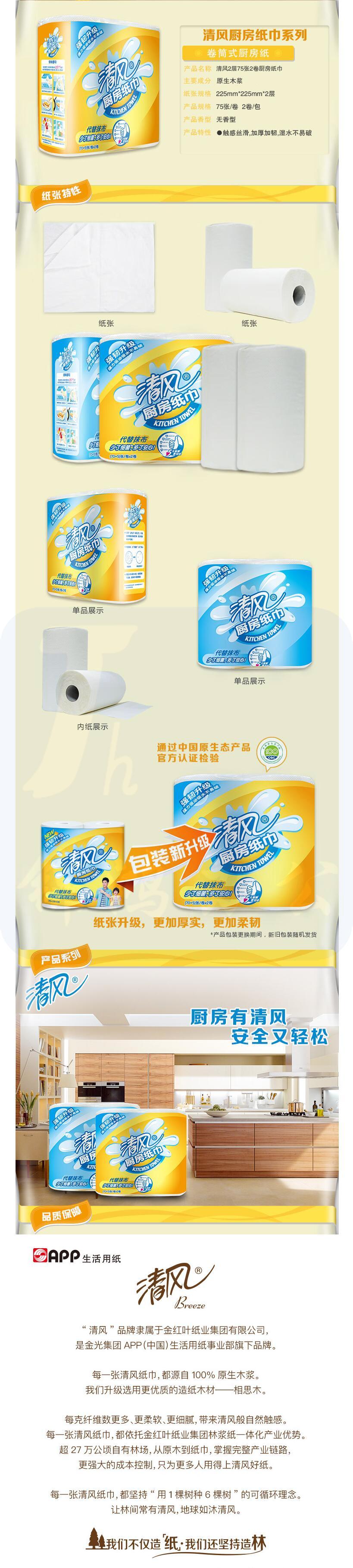 清风 厨房用纸 吸油纸 吸水纸 75段*2卷 加厚厨房卷纸 货号:LJ