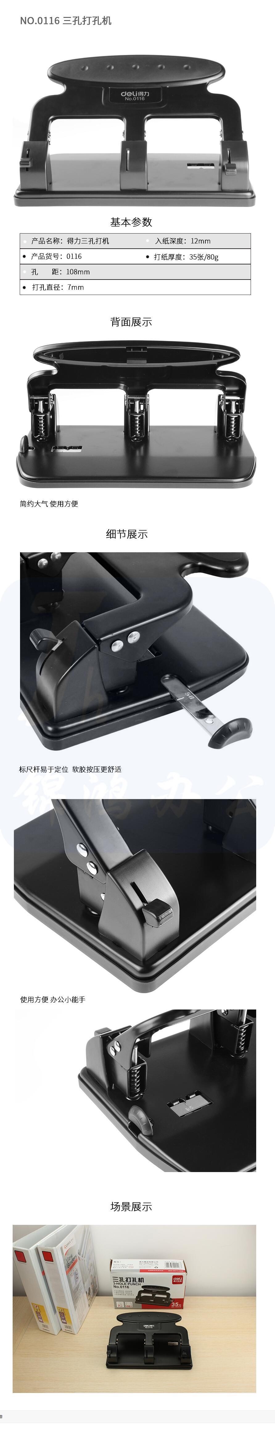 得力 0116 三孔打孔机 φ7mm孔距108mm打孔器 35页 黑色