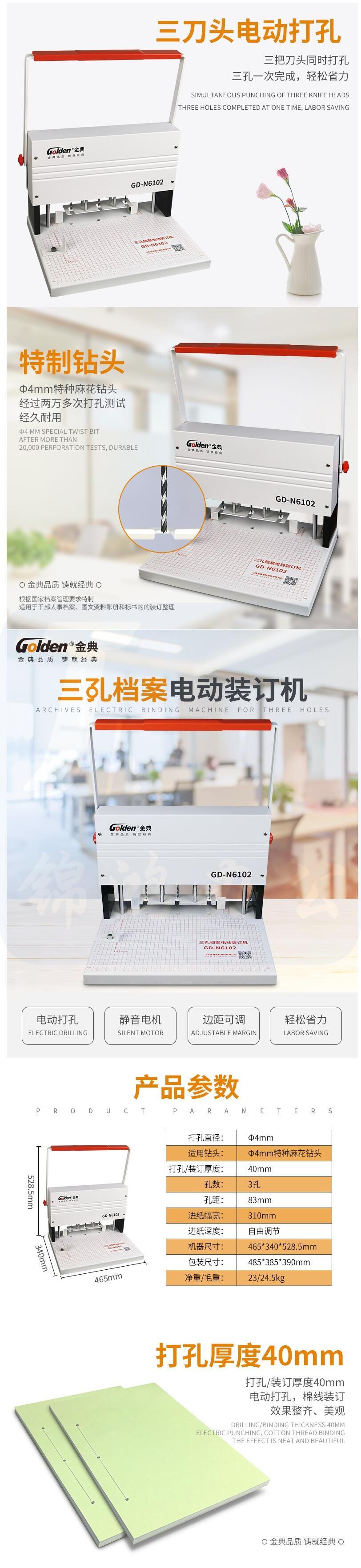 金典 GD-N6102 打孔机 三孔电动打孔器400页孔距83mm