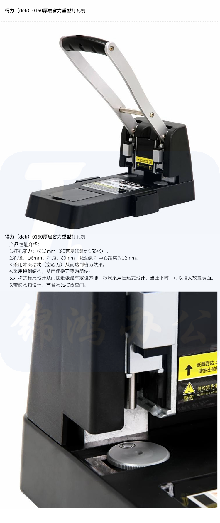 得力 打孔机 可冲纸约150张 2孔 0150 两孔重型打孔机 黑色/蓝色