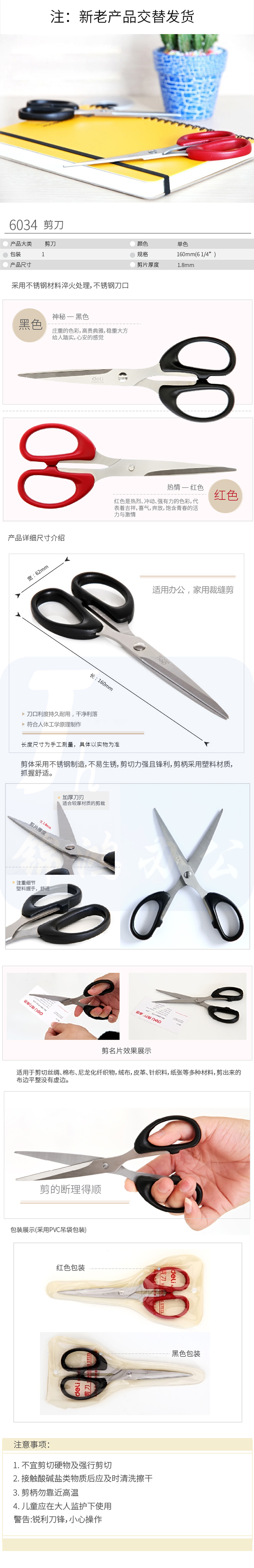 得力160mm小号办公剪刀 手工剪刀 红色6034