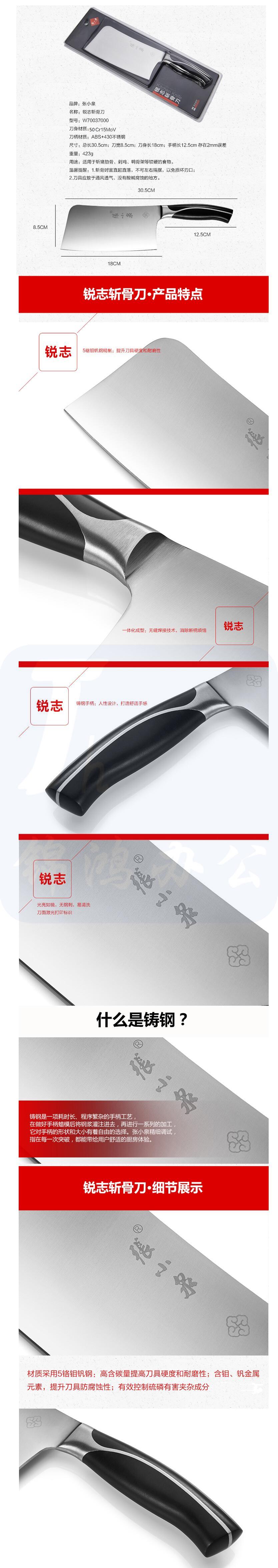 张小泉 刀具 剁骨刀 家用菜刀 锐志系列不锈钢菜刀斩骨刀W70037000