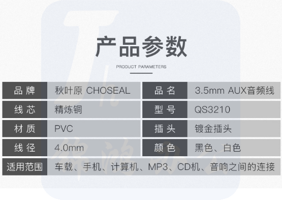 秋叶原(CHOSEAL)QS3210AT10 音频线 3.5对3.5 汽车AUX线 10米