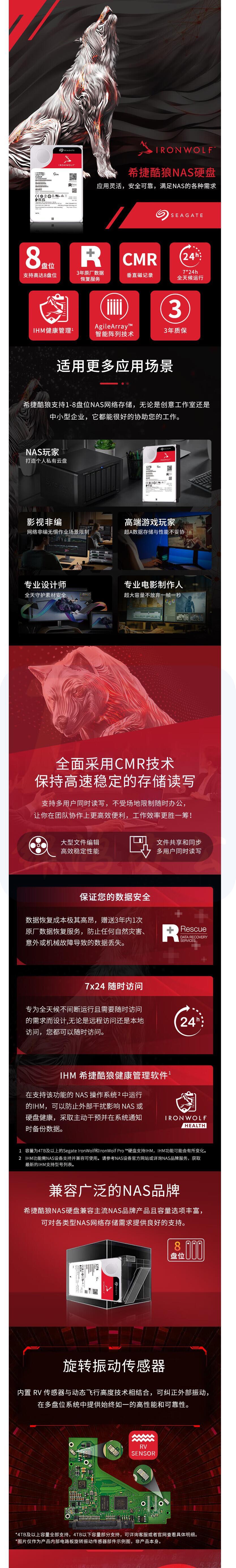 希捷(SEAGATE) NAS硬盘 PMR CMR垂直磁记录 网络存储 SATA 希捷酷狼 数据恢复 4TB ST4000VN006