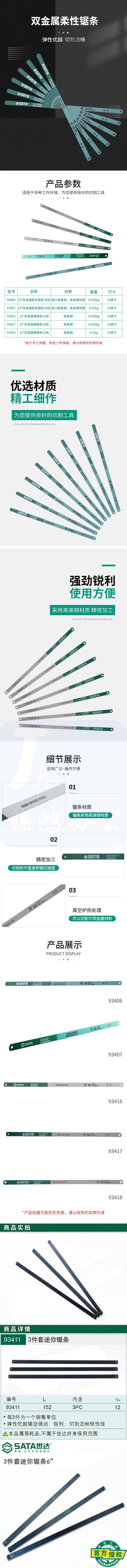 世达 93406 12英寸金属锯条 双金属柔性锯条18齿(10条装)