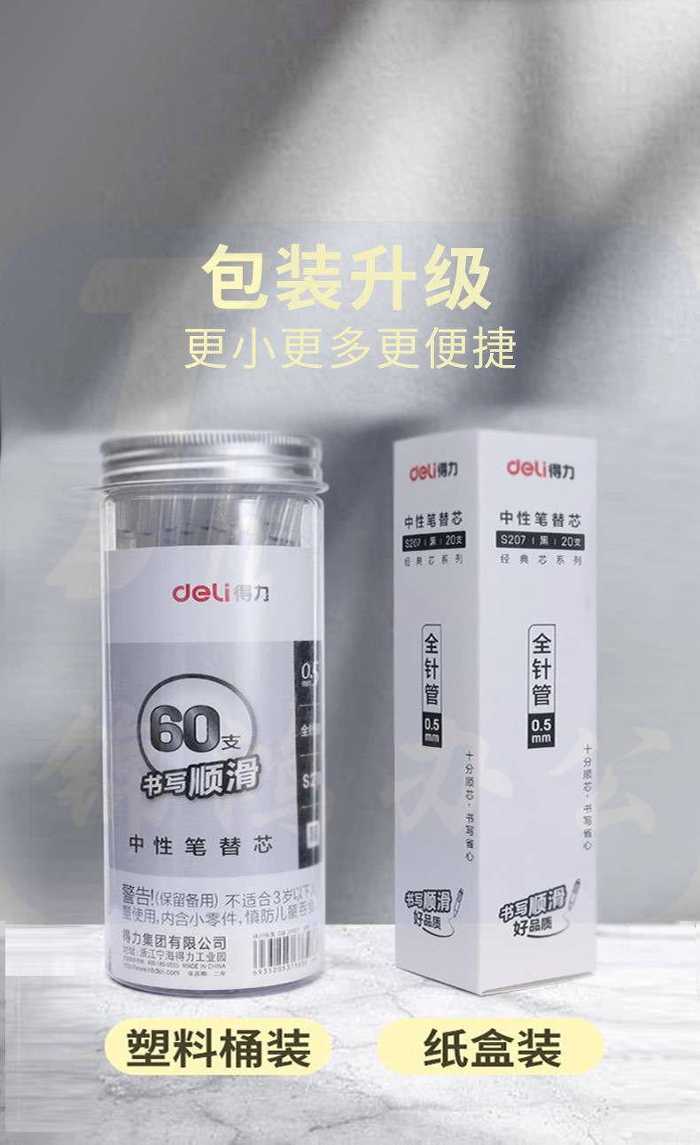 得力笔芯中性笔0.5mm全针管st考试专用黑笔替芯黑色红色蓝色子弹头水笔替换墨蓝速干笔心碳素圆珠签字按动芯