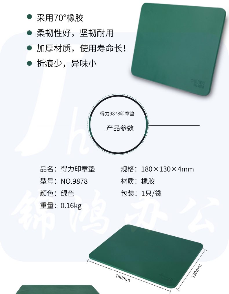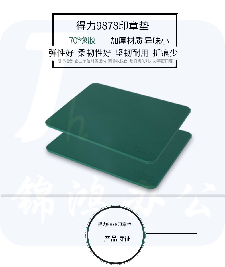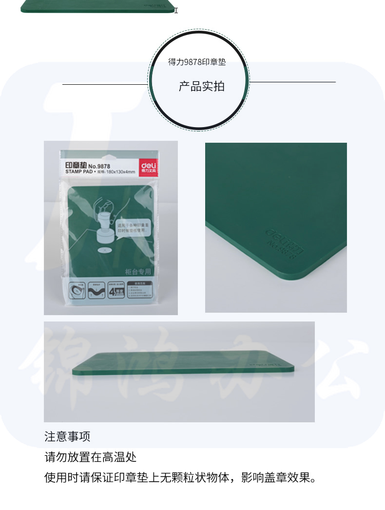 得力9878财务使用印章胶垫 方形盖章垫子印台不变形财务盖章垫子办公用品加厚软印章垫软垫板